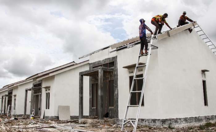 图为:工人日前正在中加里曼丹省帕朗卡拉亚市加紧推进国家储蓄银行(BTN)住房项目建设。BTN帕朗卡拉亚分行表示,2026年该省住房贷款(KPR)发放目标为2,200套。